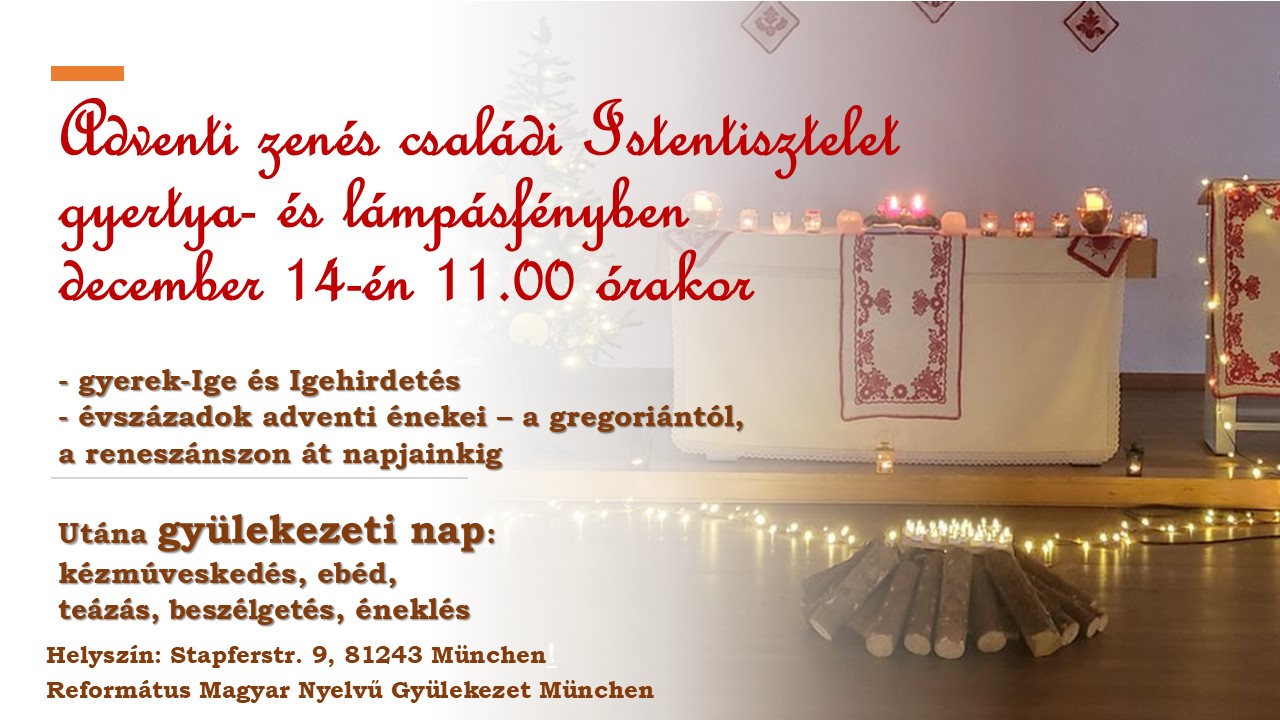 A Müncheni Magyar Nyelvű Református Gyülekezet mindenkit szeretettel hív és vár!